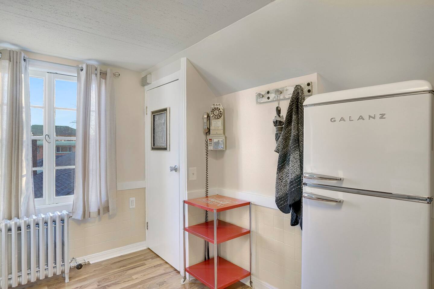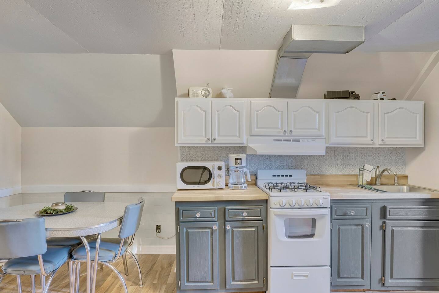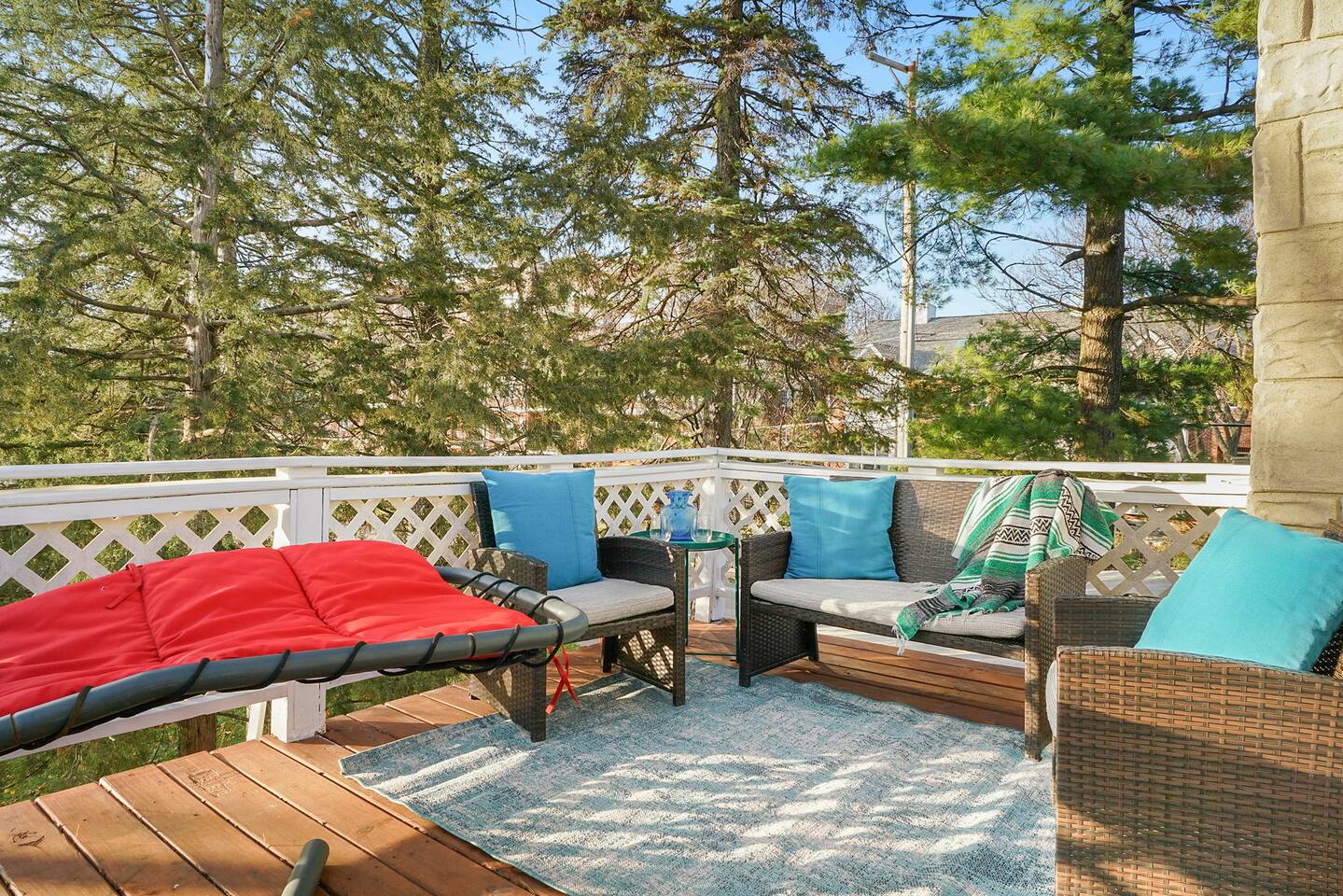 The Hideaway Apartment in Downtown Palatine! Eat in Kitchen - New Retro Appliances - Fully Stocked with Pots, Pans, Glassware, Utensils and more - Unique Bar with Vintage Glassware Living Room - Flat Screen TV with Roku - Huge Ultra Comfortable Sofa that Doubles as a Queen Bed. (Many Guests Have Actually Gone on to Buy the Same Model Sofa) Bedroom - King Size Memory Foam Bed - Blackout Curtains Plus Pull Down Shade Bathroom - Rain Shower Head - New Fixtures Deck - Completely Private 10x14 2nd Floor Deck with String Lights.